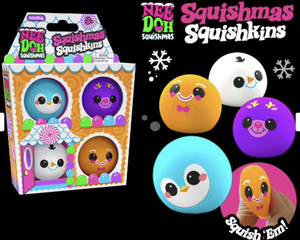 Doh-ho-ho! Squishmas Squishkins are here to make your holiday squishy and bright! These adorable lil' guys are doh-filled and come 4 to a pack in their own gingerbread house box.