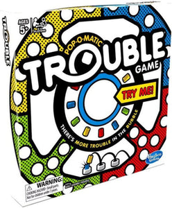 Getting into Trouble has never been so much fun! The excitement begins as soon as you press the classic Pop-O-Matic bubble to roll the die. Kids race to get all their game pieces around the board, but be careful! You could get bumped! Get all 4 of your pieces around the board without getting bumped and sent all the way back to the beginning. The first to get all of their game pieces around the board, wins!
