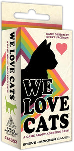 The purr-fect short game for cat lovers! How many cats can you adopt? Every cat finds a home . . . Includes a cloth bag, 30 cat tokens, and two special dice. For two to five players – and it takes just a few minutes. (Then play again and adopt some more cats!)
